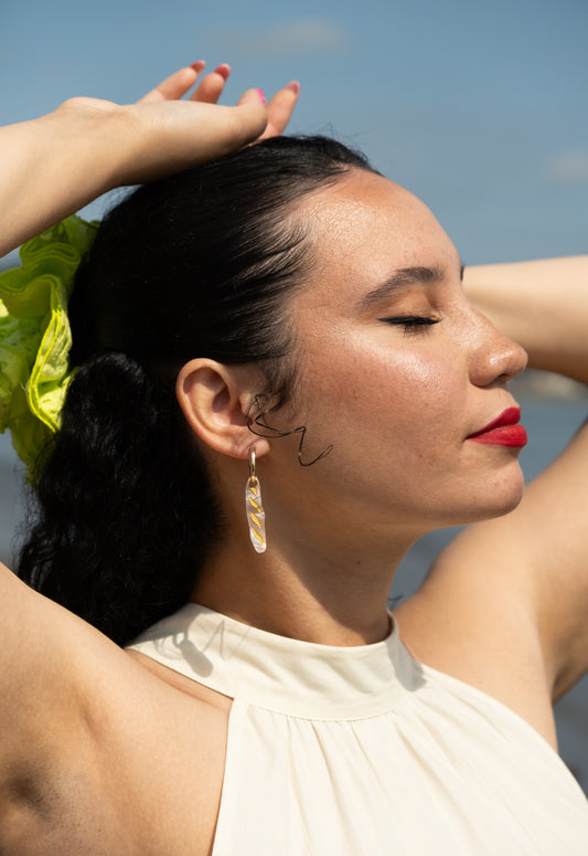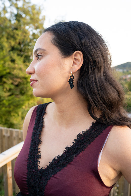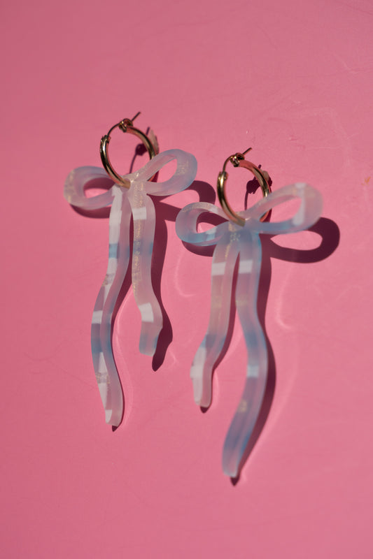 Baby Blue Tartan Dangly Bow Hoop Earrings