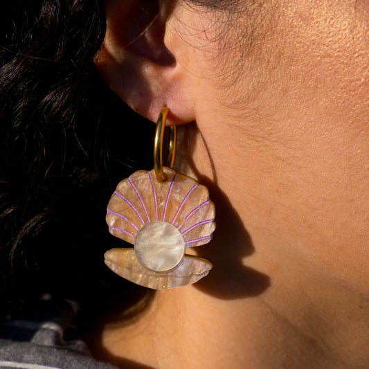 Clam And Pearl Hoop Earrings