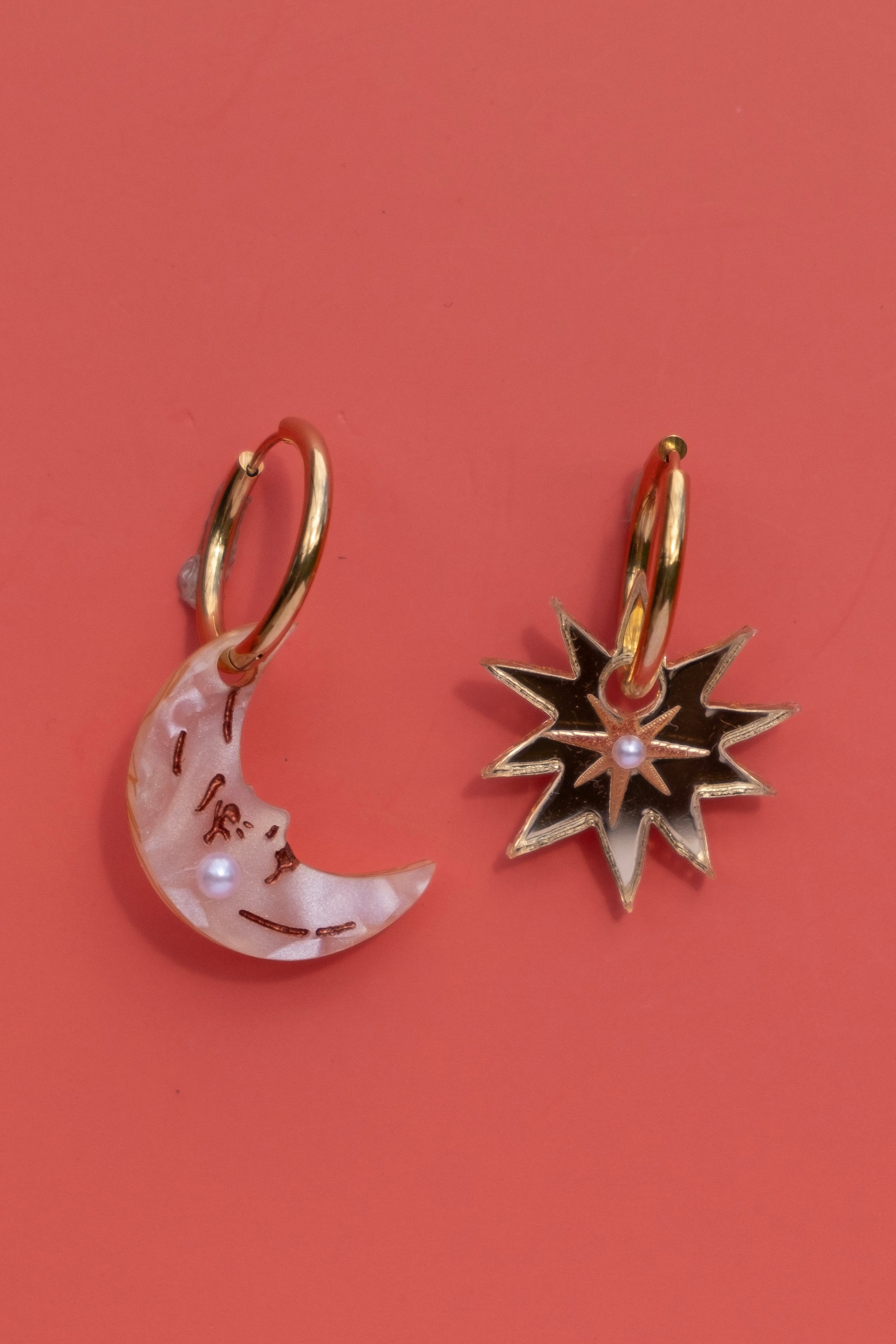 - Asymmetrical star and moon hoop earrings
