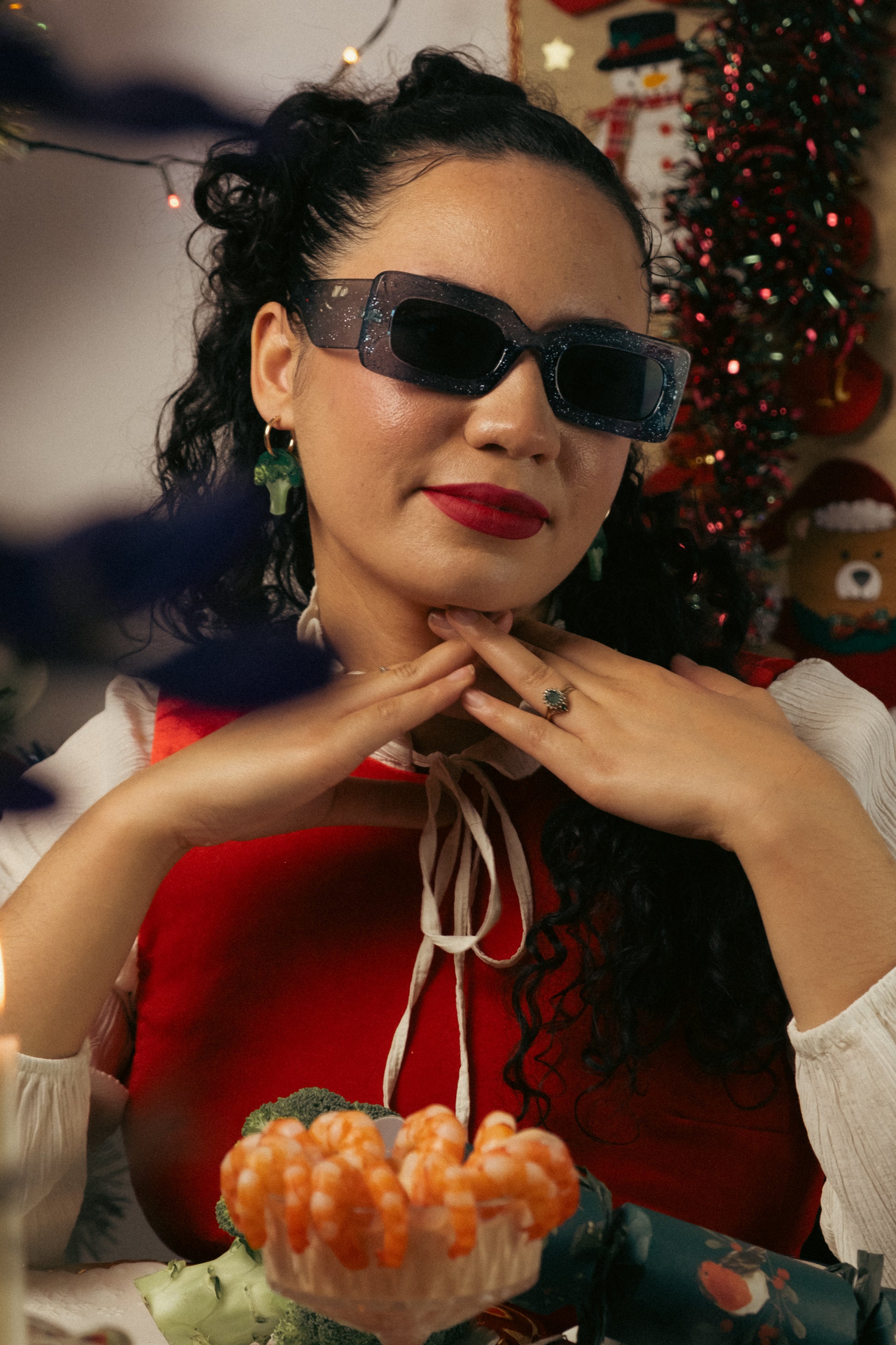 - Broccoli vegetable hoop earrings